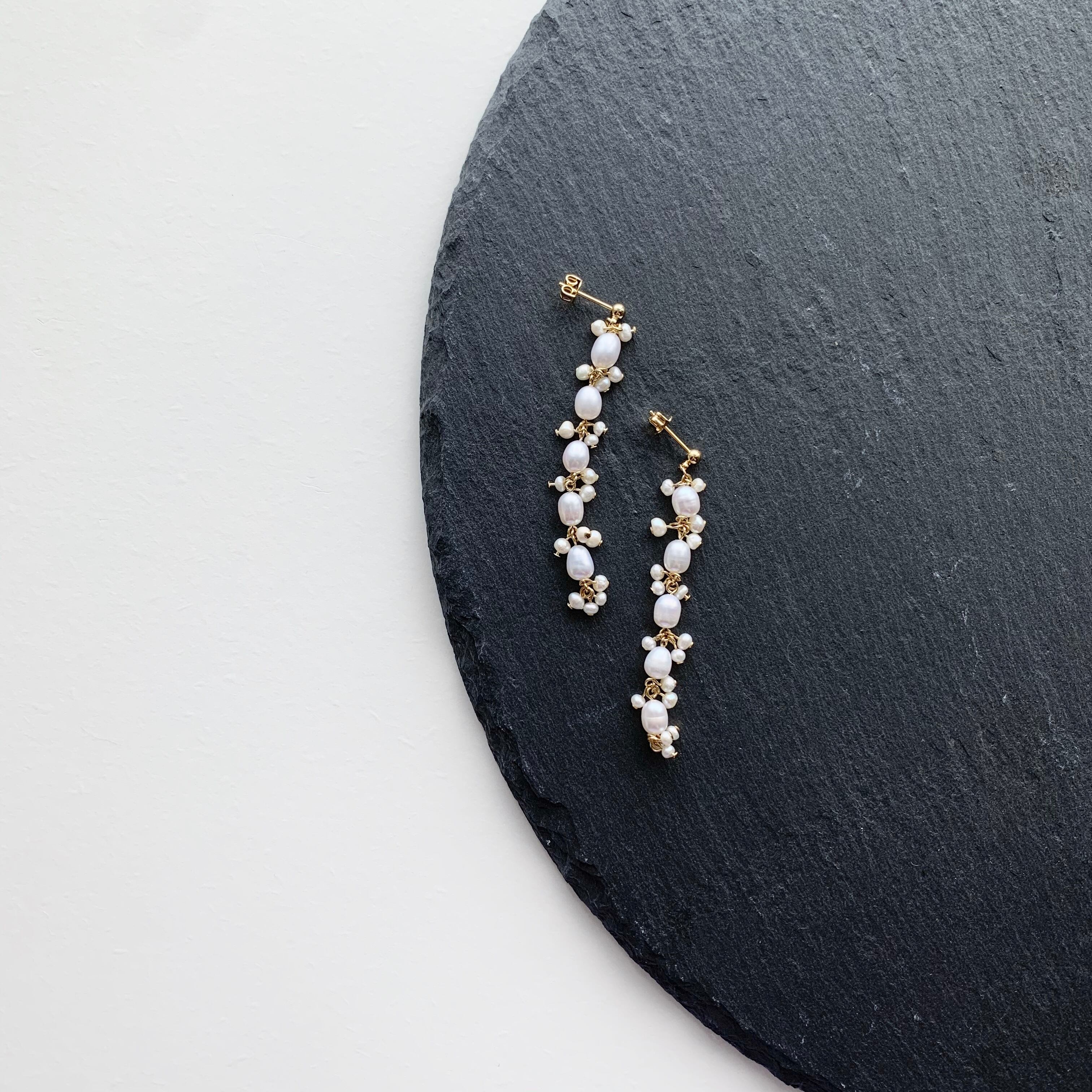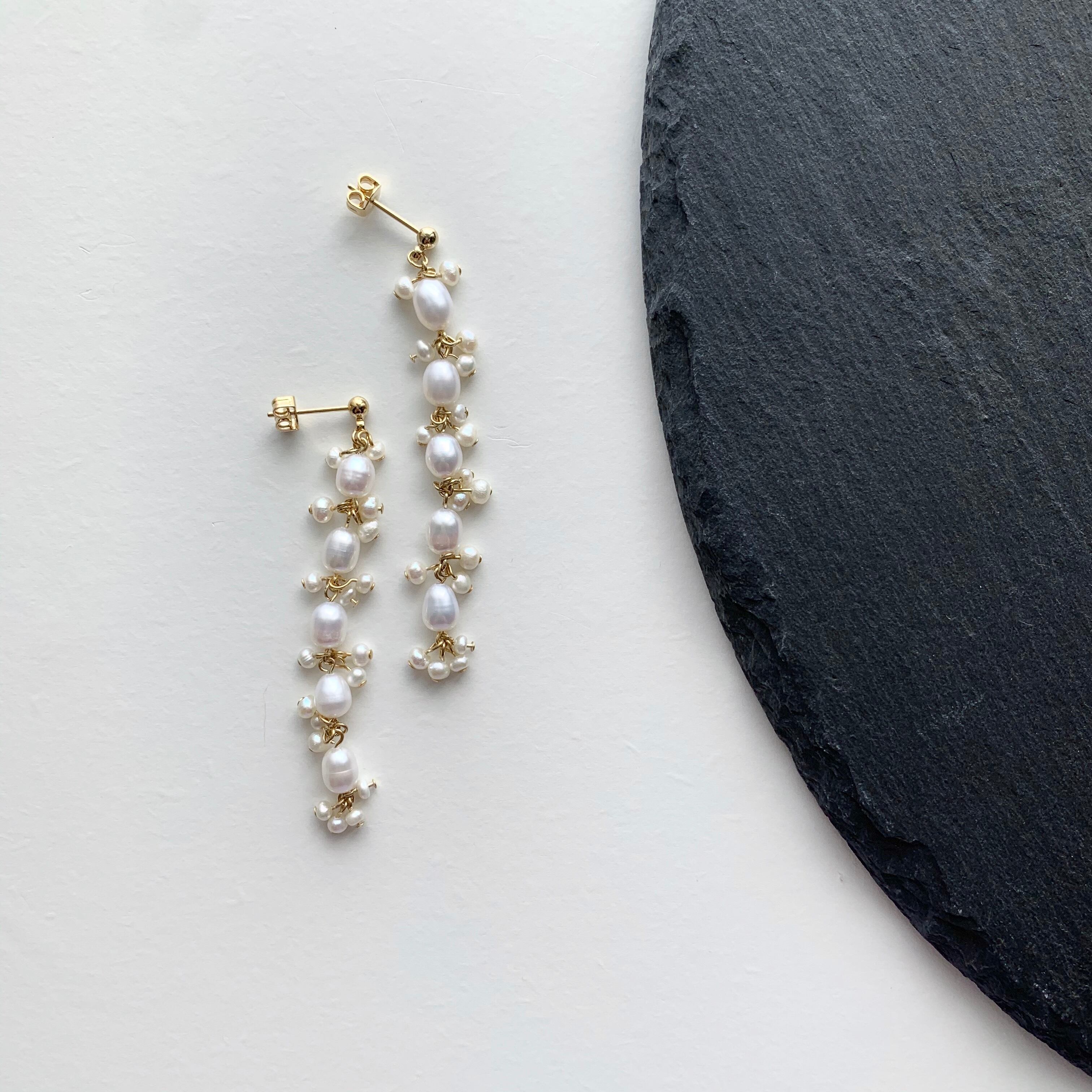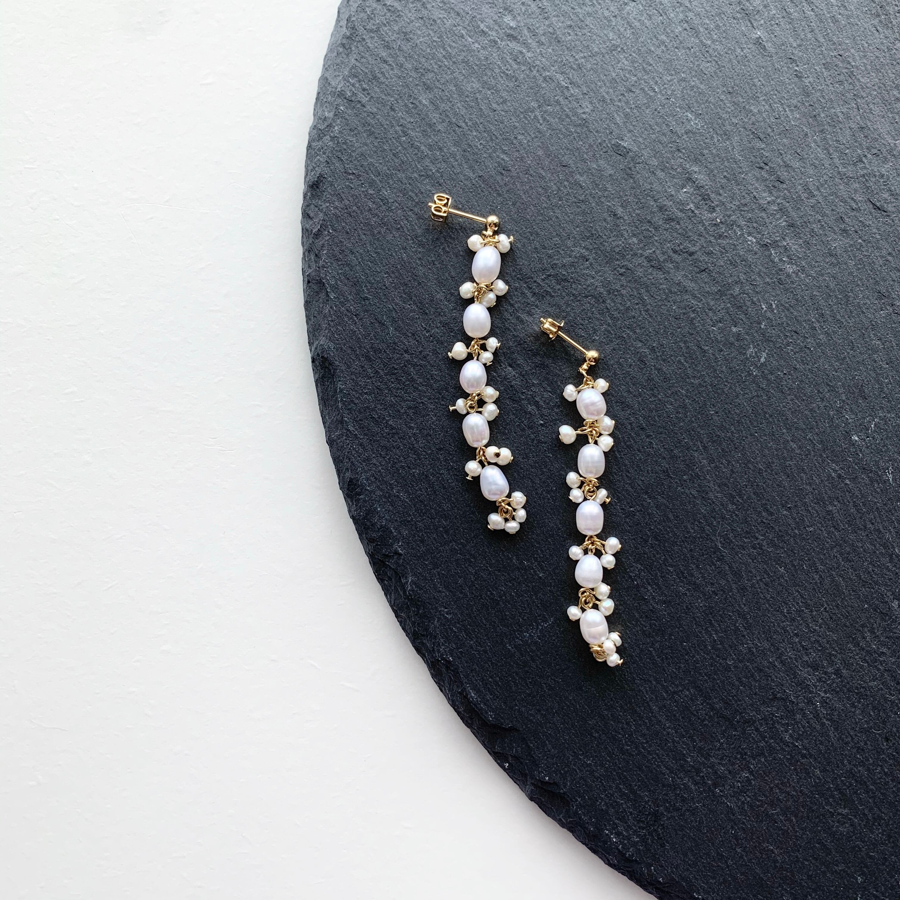 大きいパールと小さい淡水パールを混ぜ、