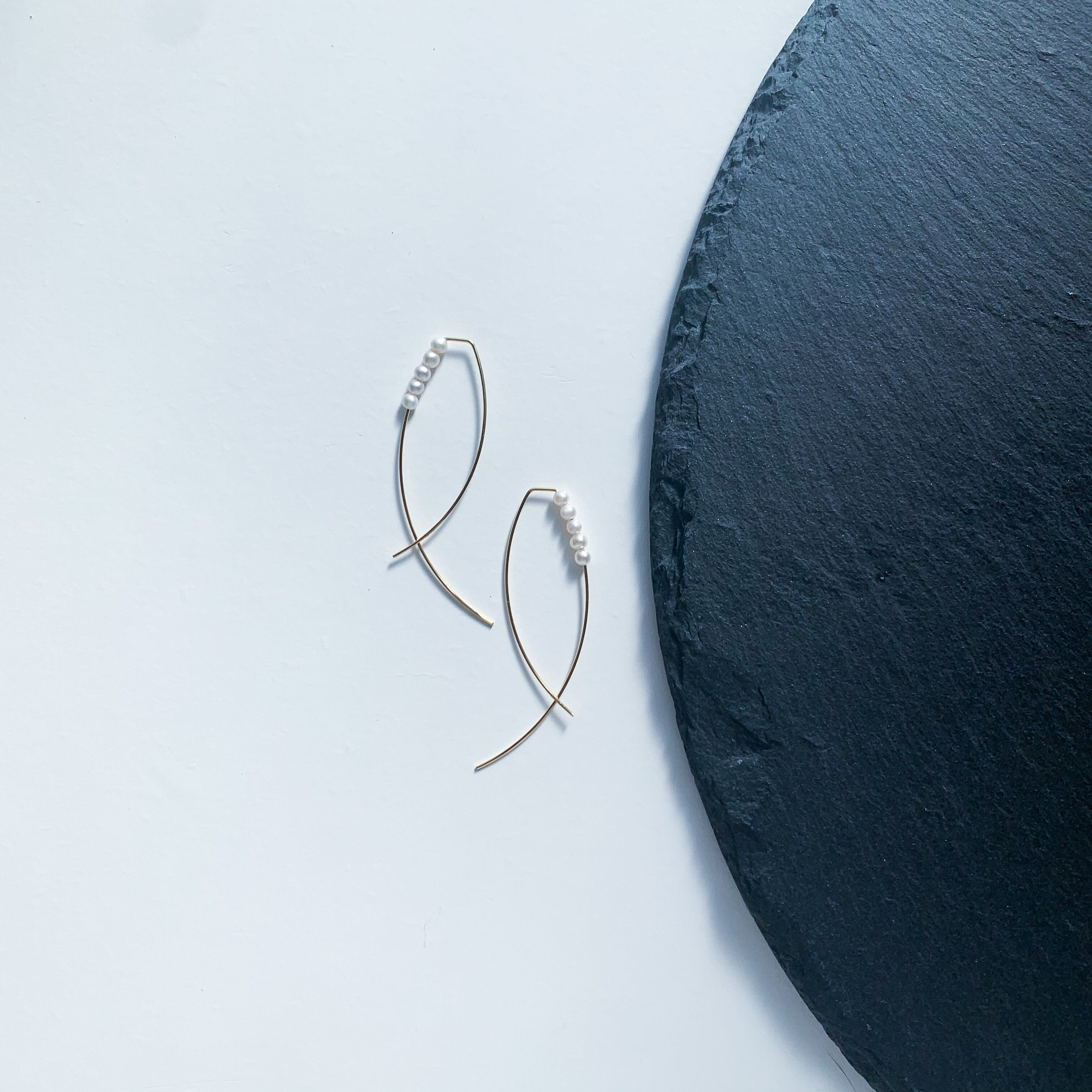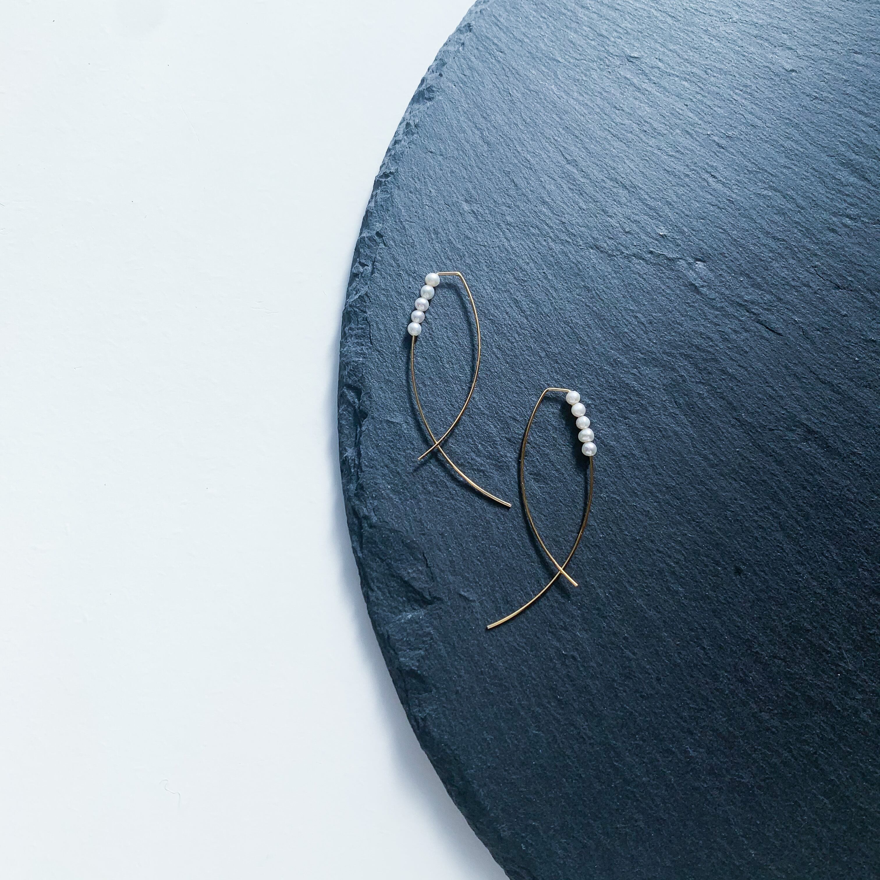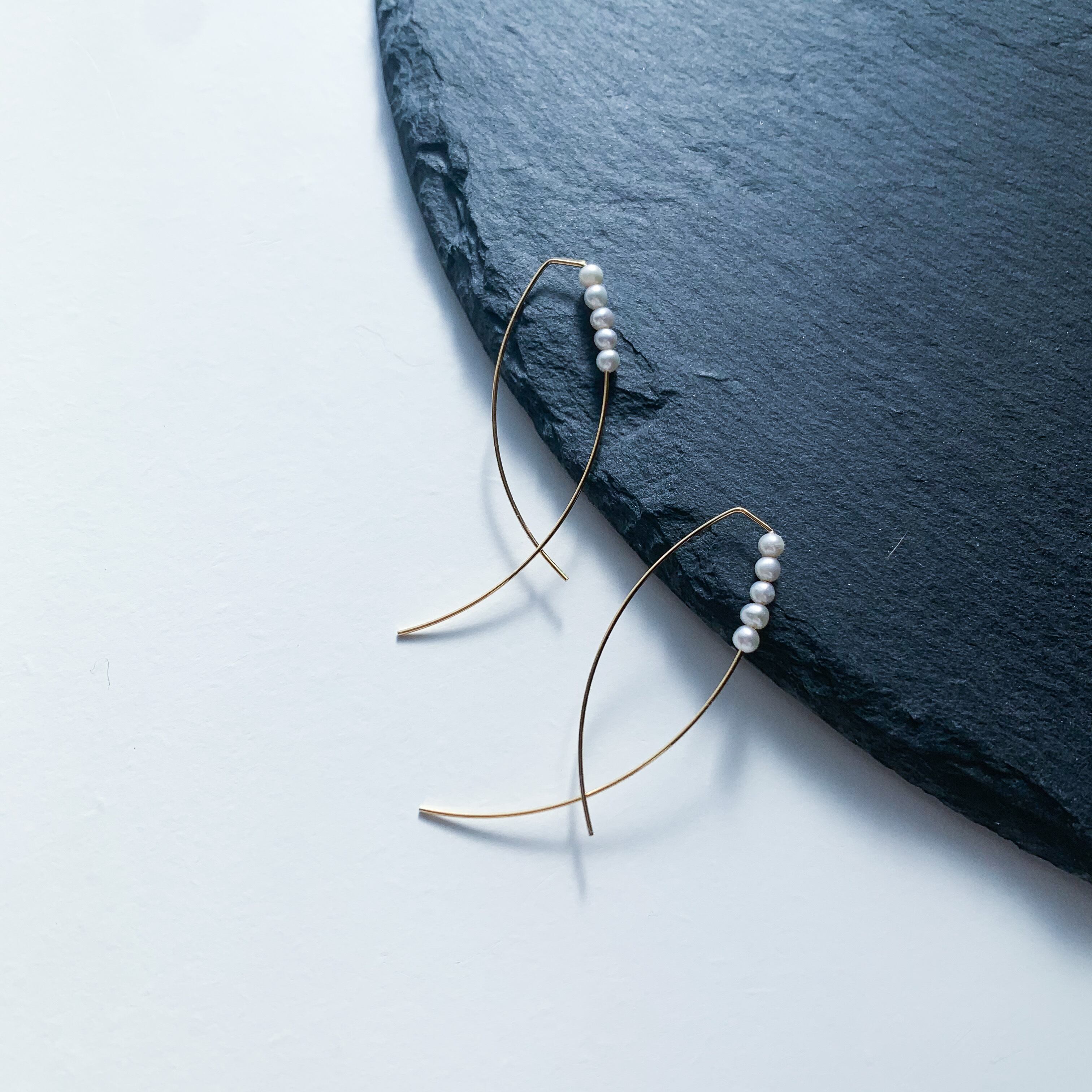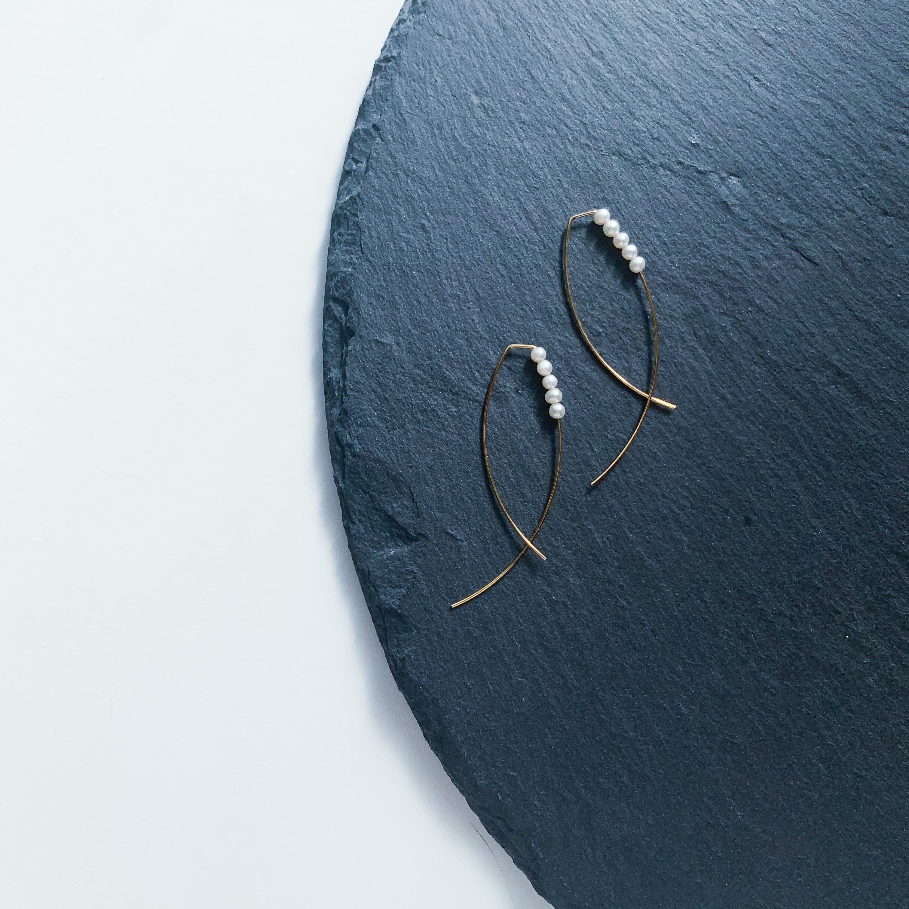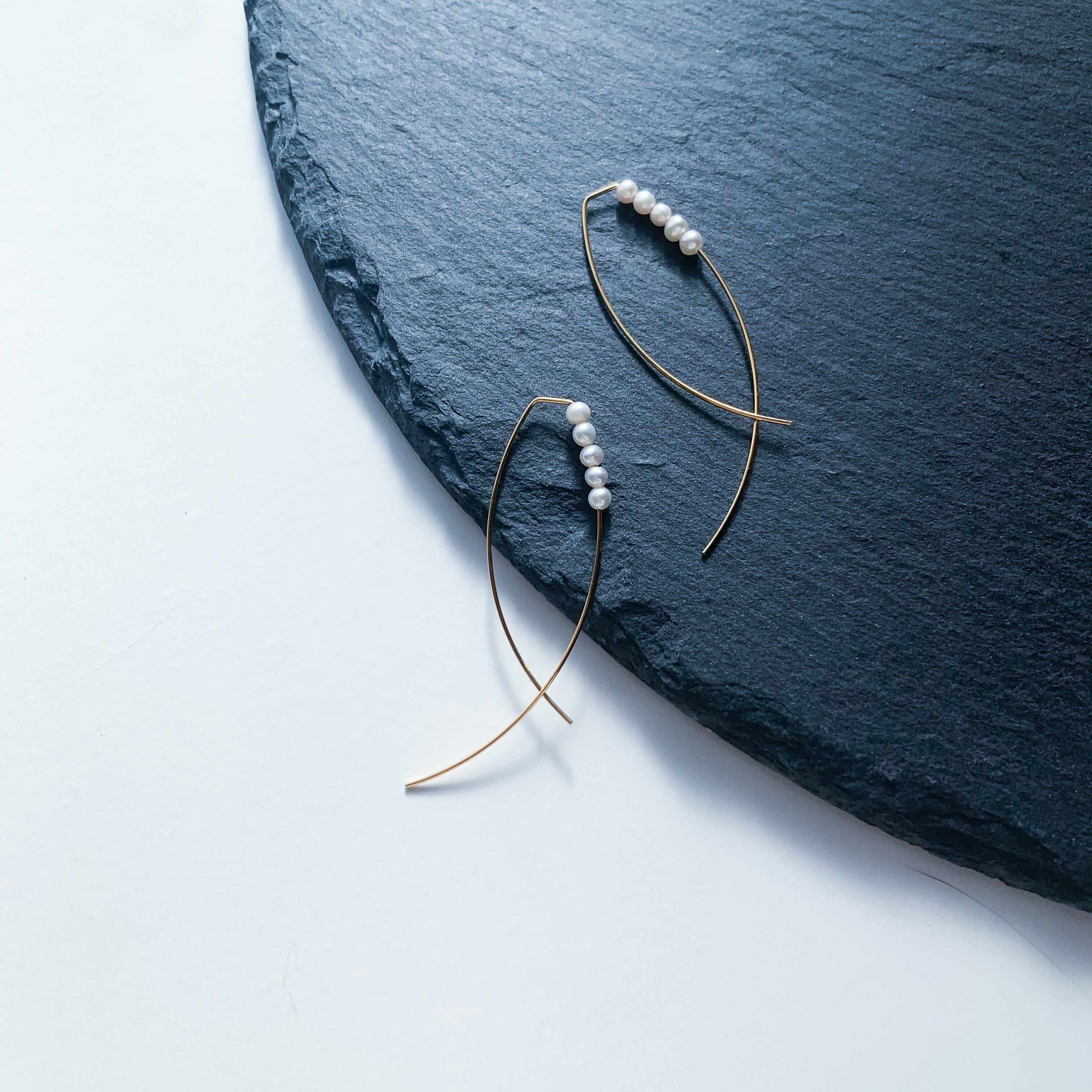 少し形が変わったゴールドの金具と合わせた上品なピアスです。