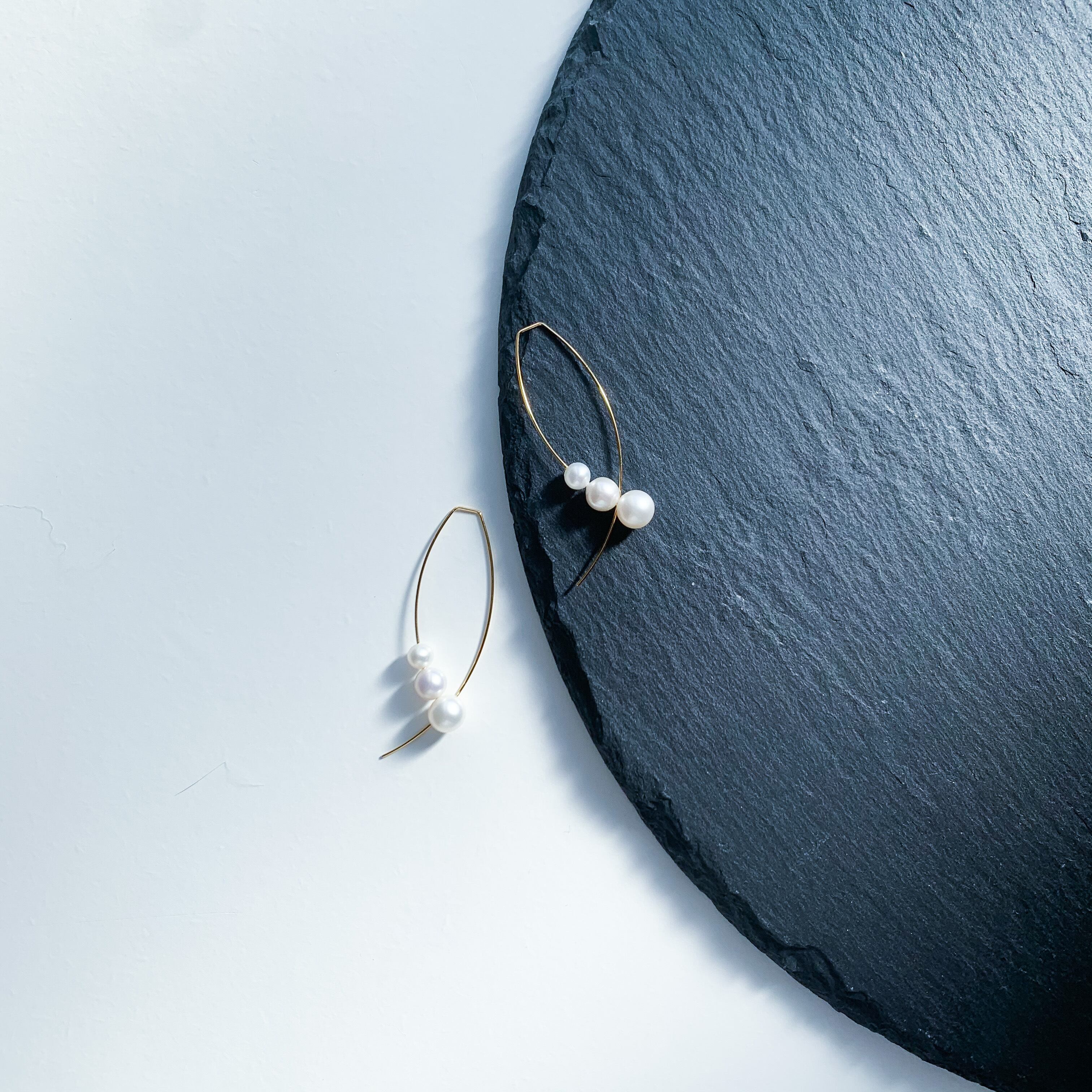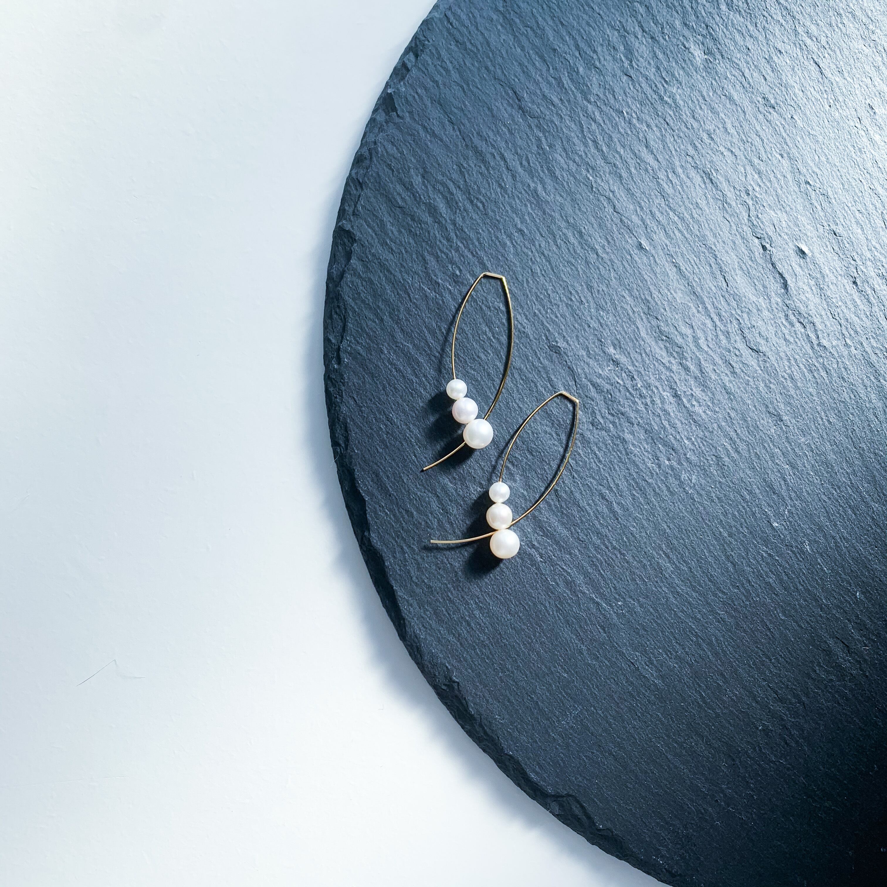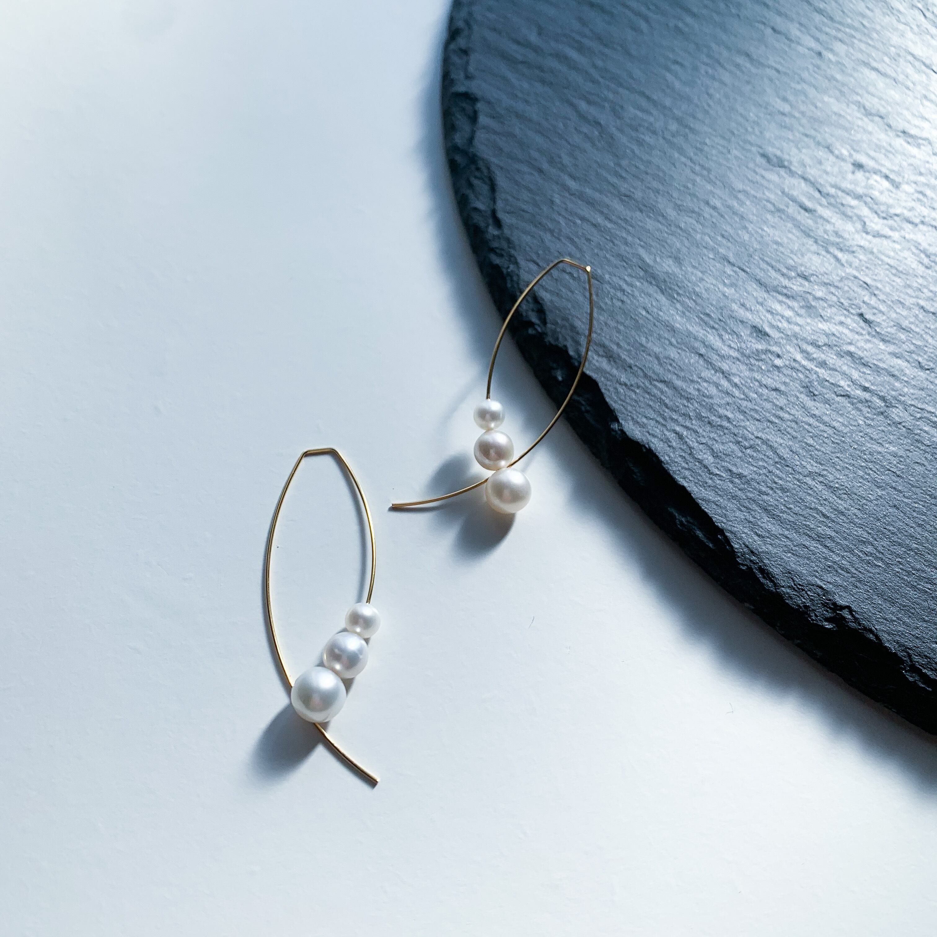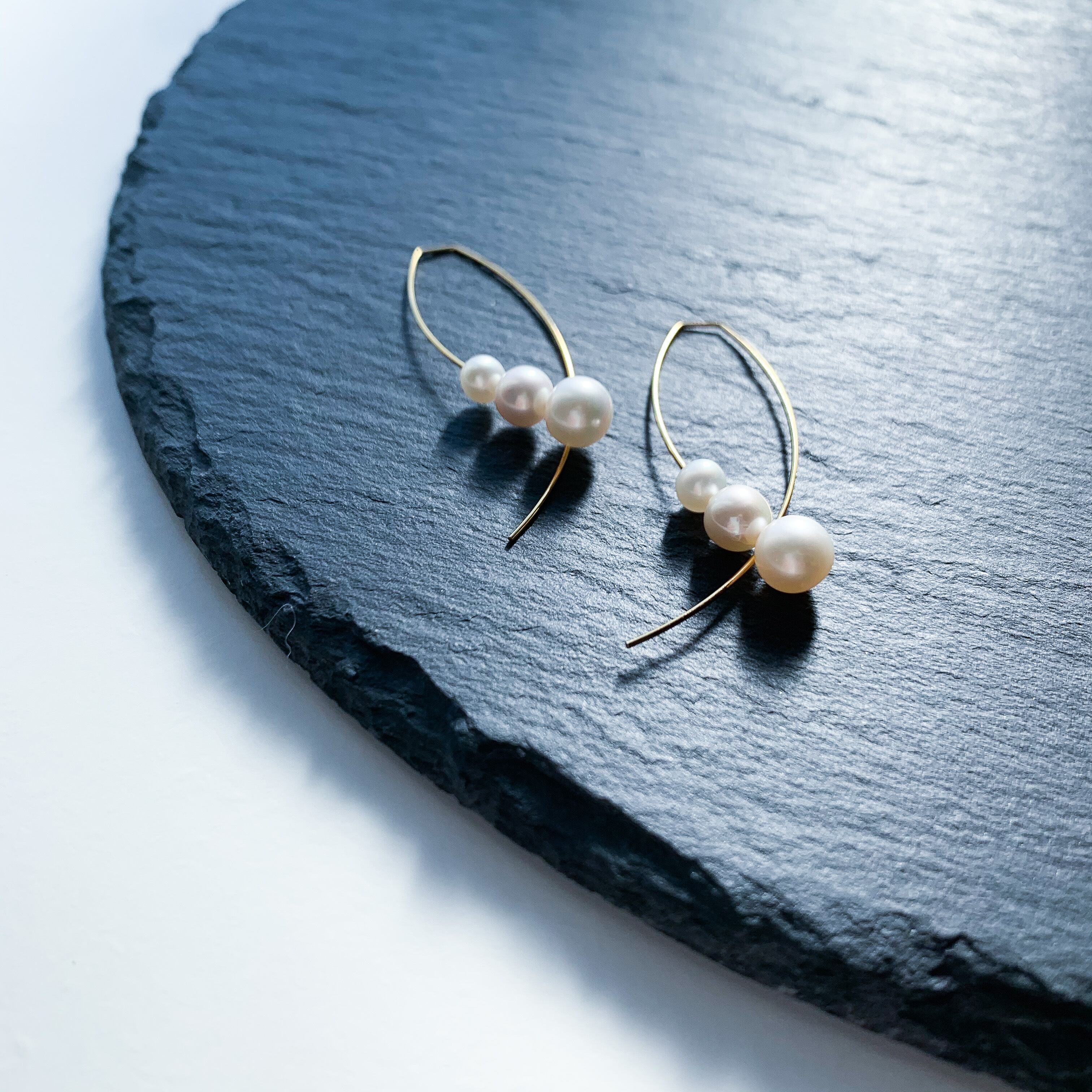 少し形が変わったゴールドの金具と合わせた上品なピアスです。