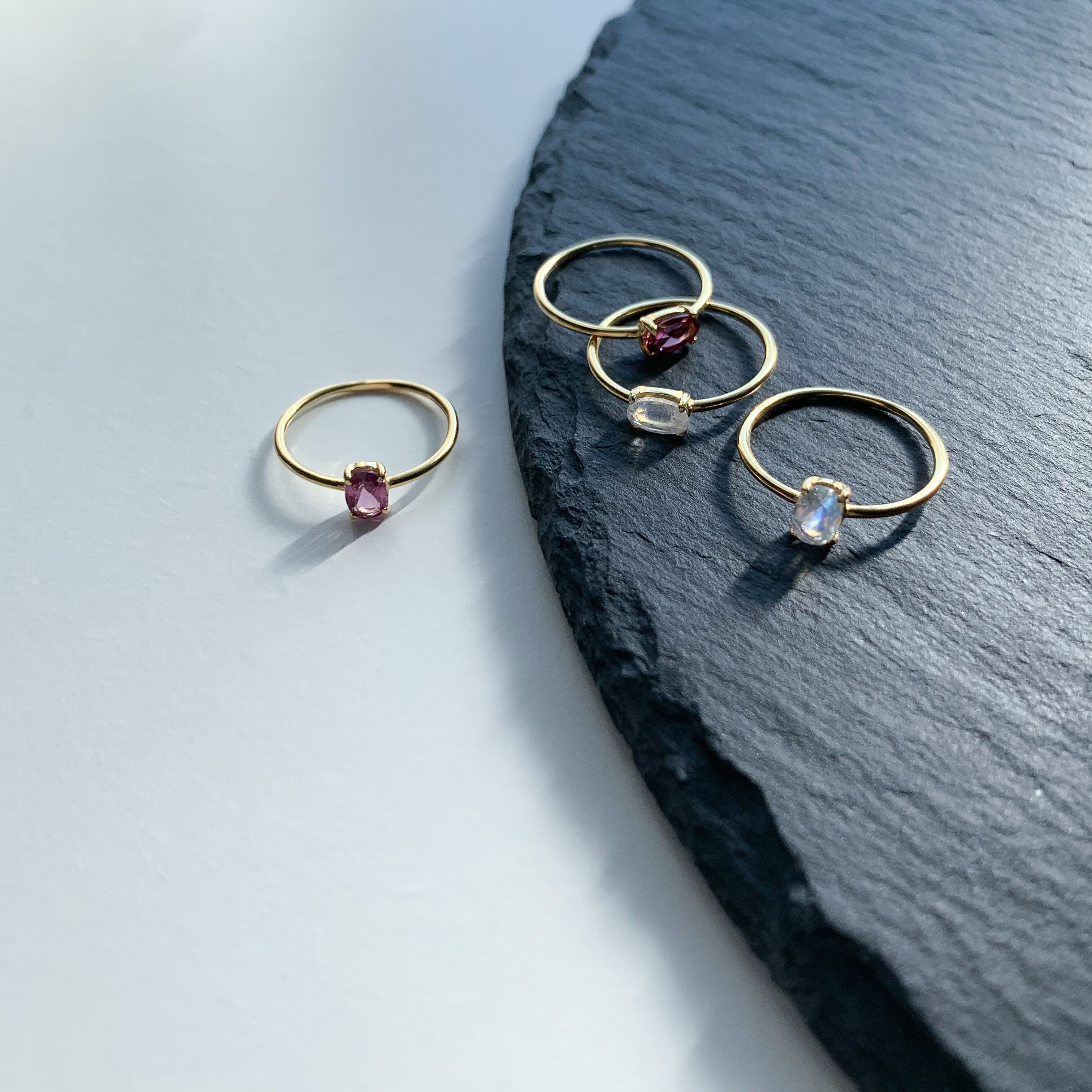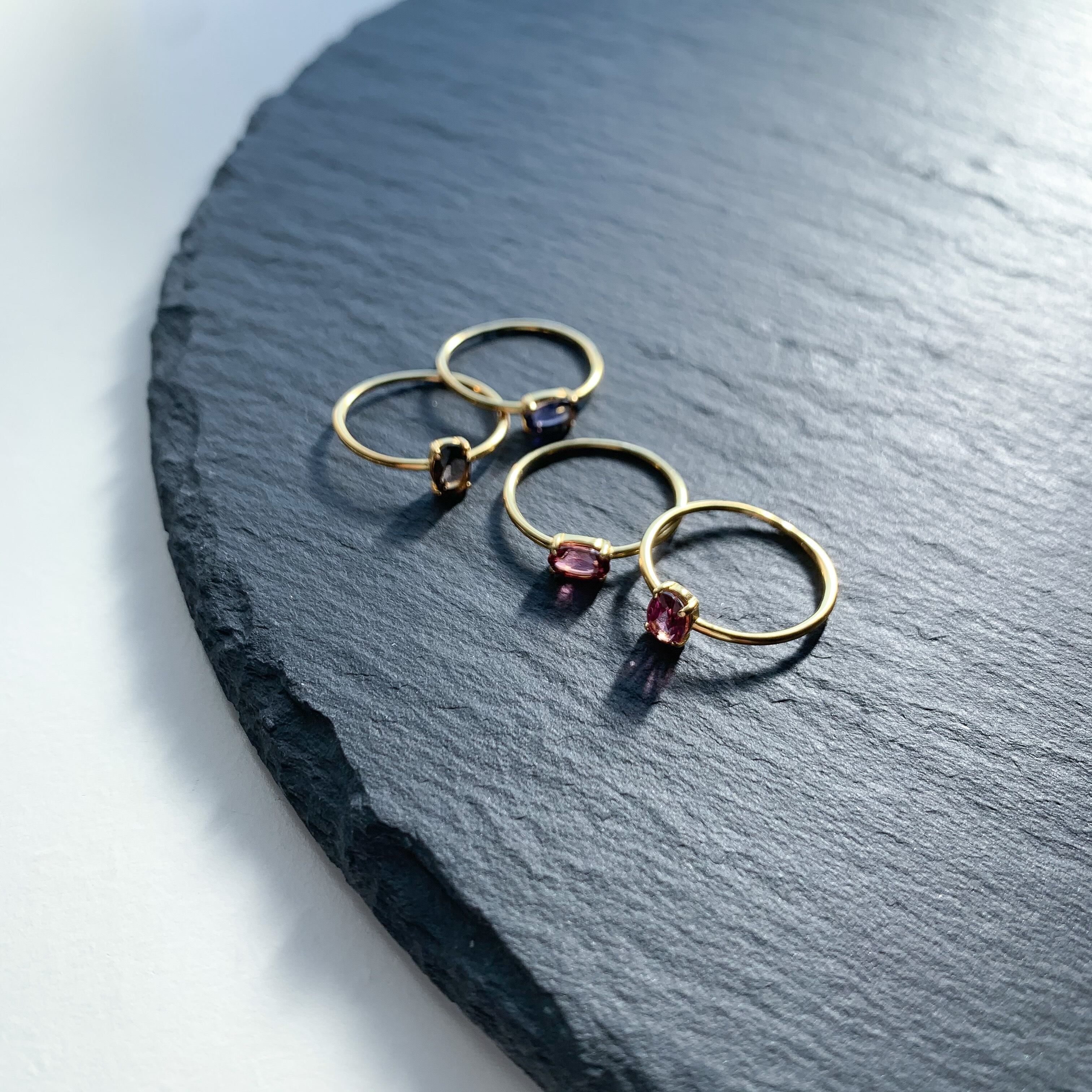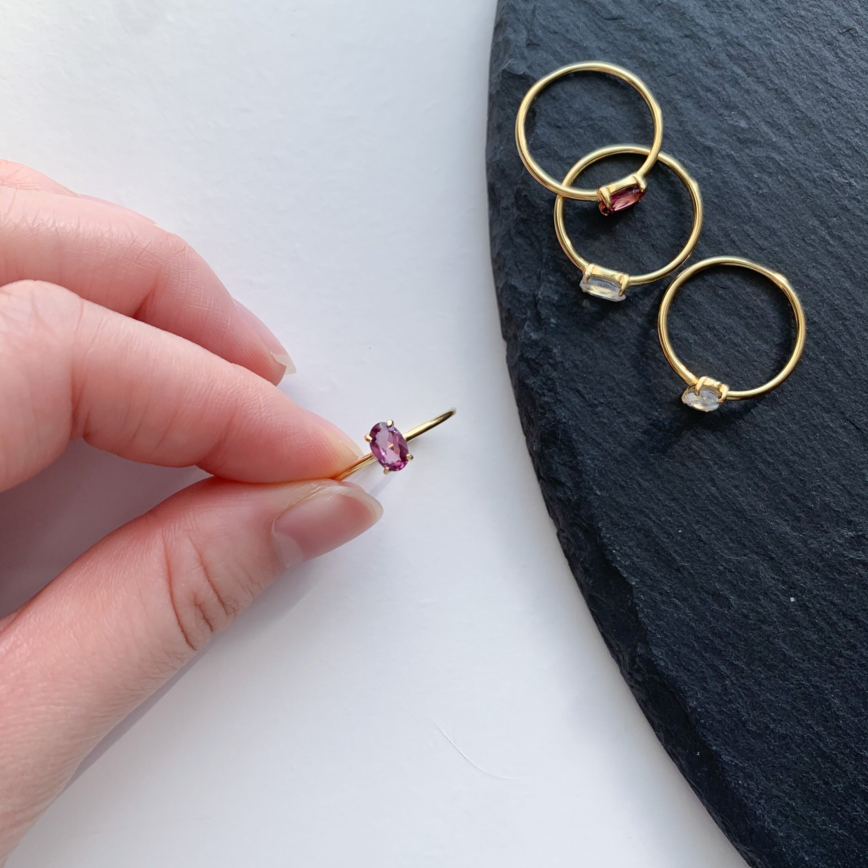 1月の誕生石、ガーネットのシンプルな縦オーバル型のリングです。