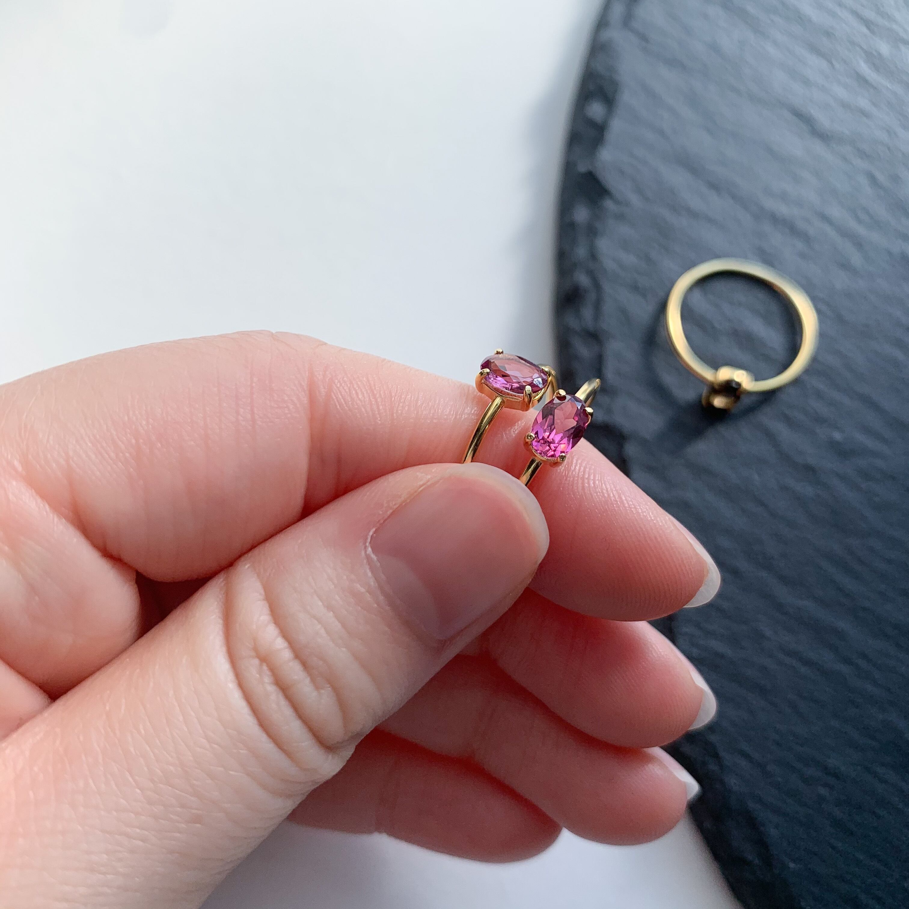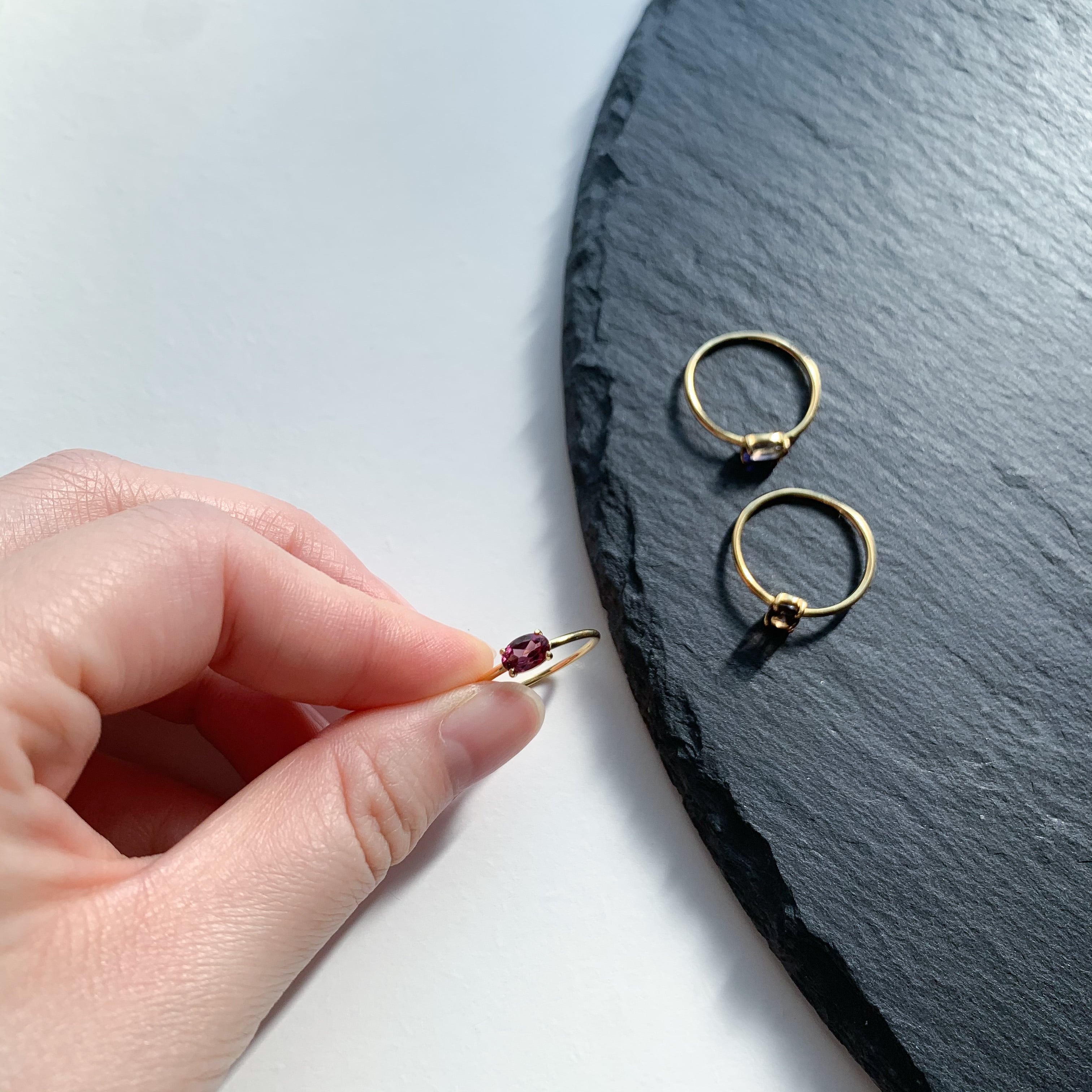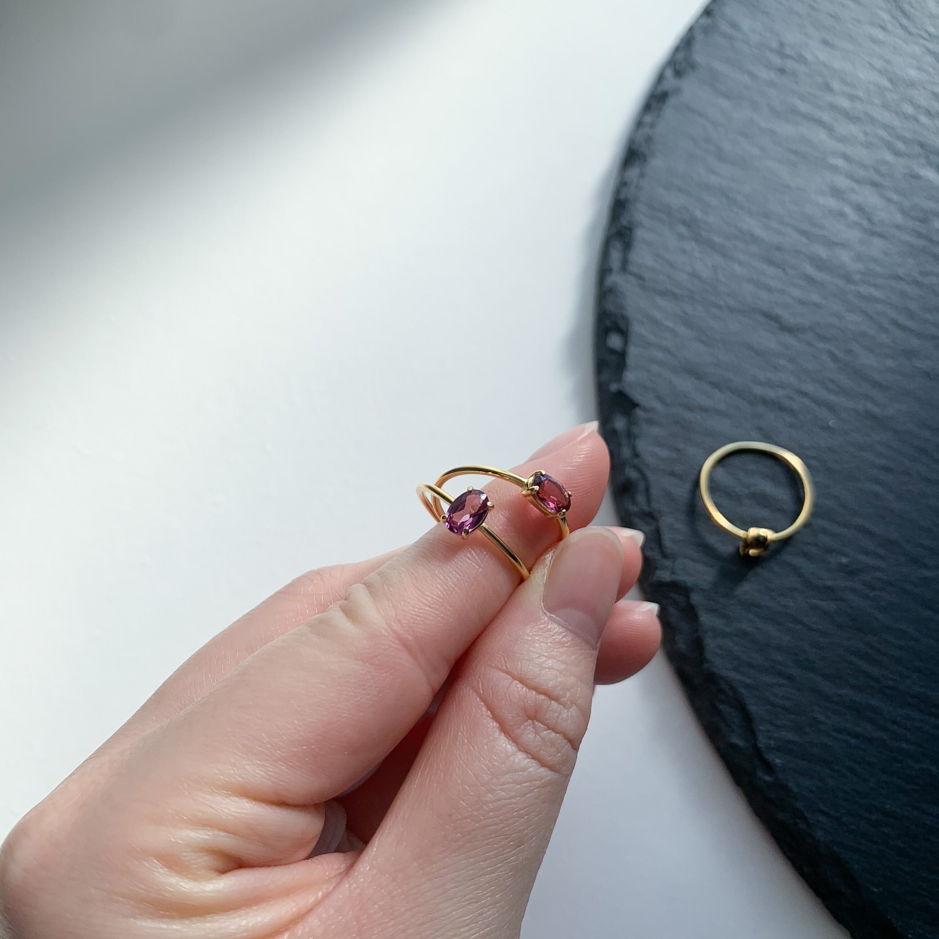 1月の誕生石、ガーネットのシンプルな縦オーバル型のリングです。