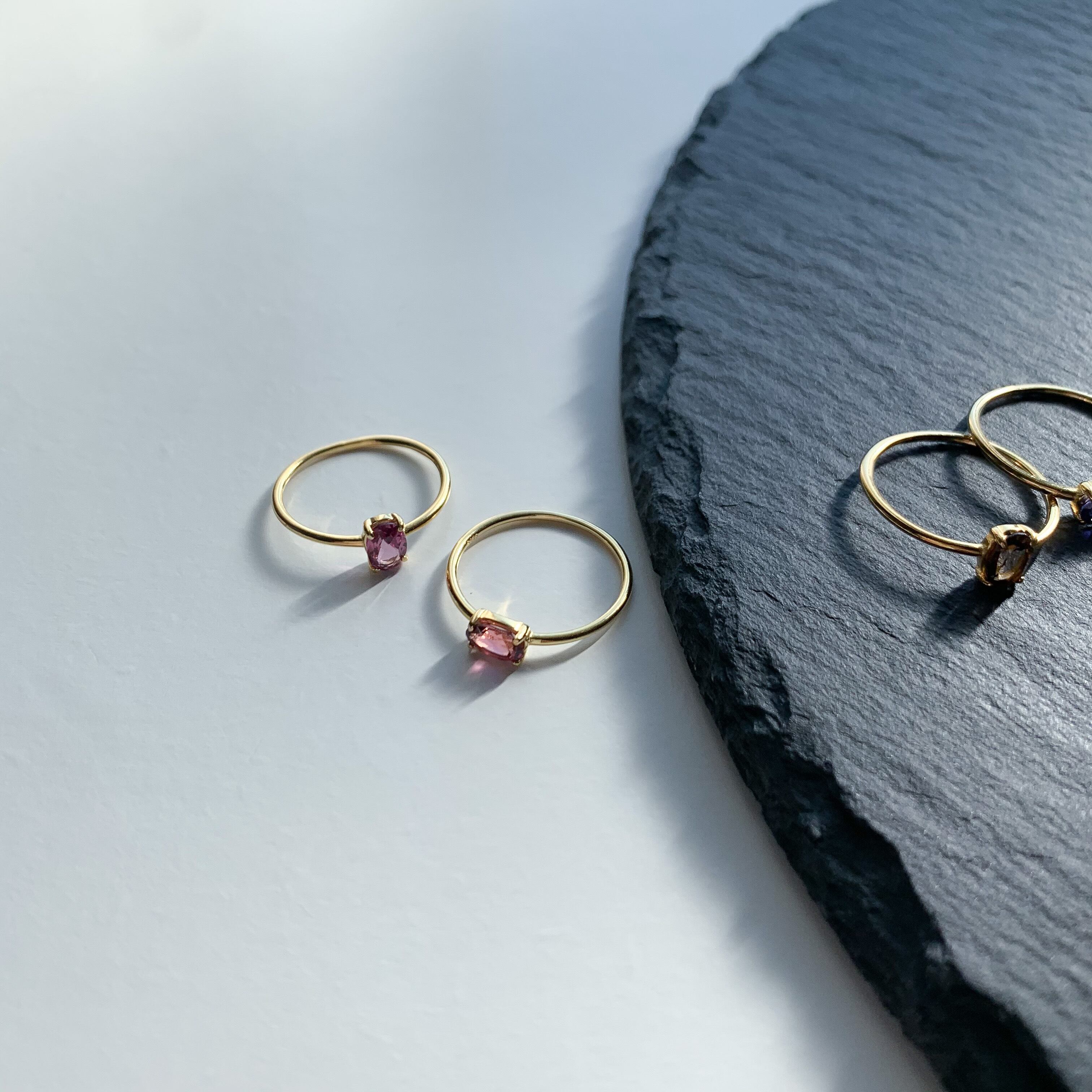 うっすらの紫色がかかった桜色の石が素敵で