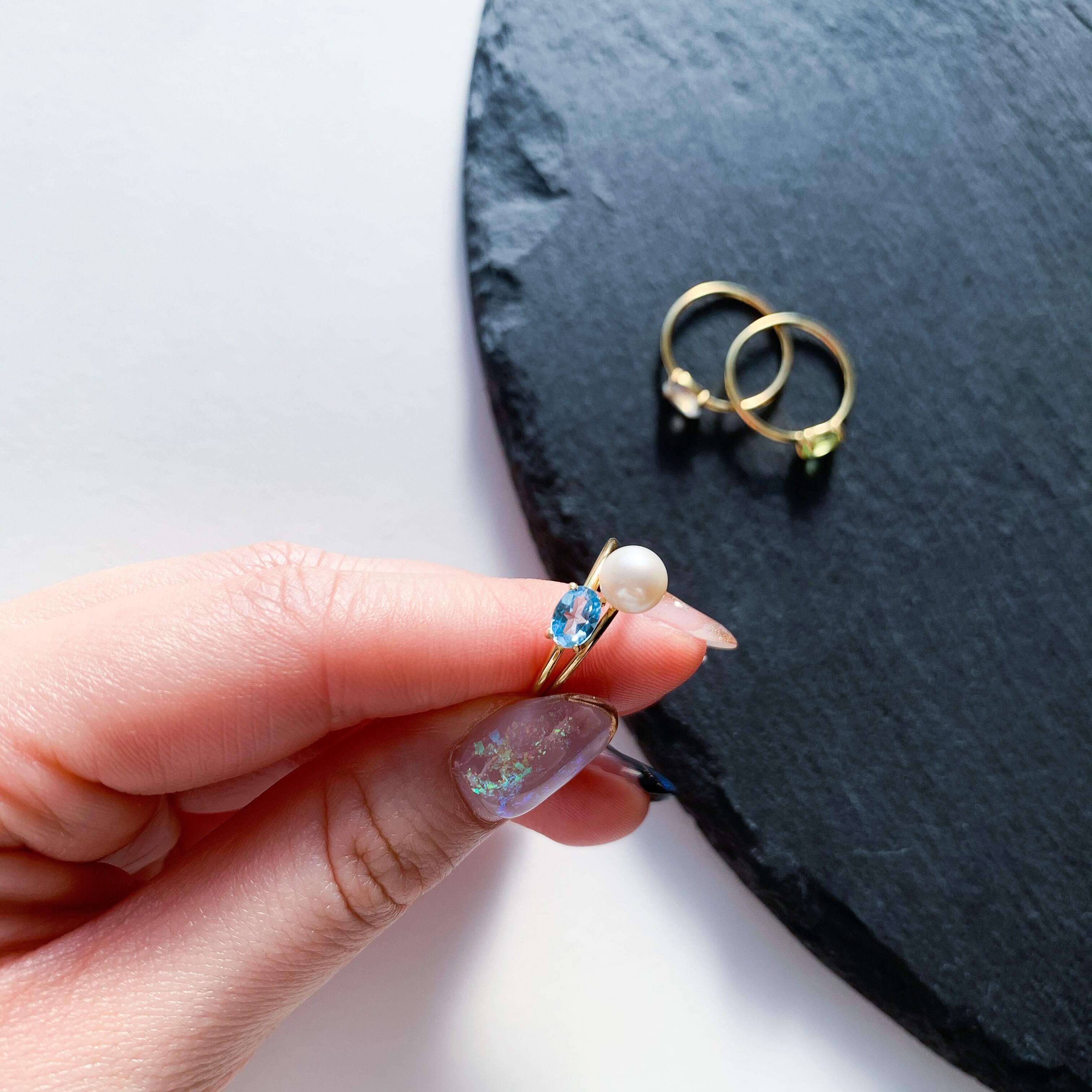 お手持ちのジュエリーと一緒に重ね付けするのも素敵です。
