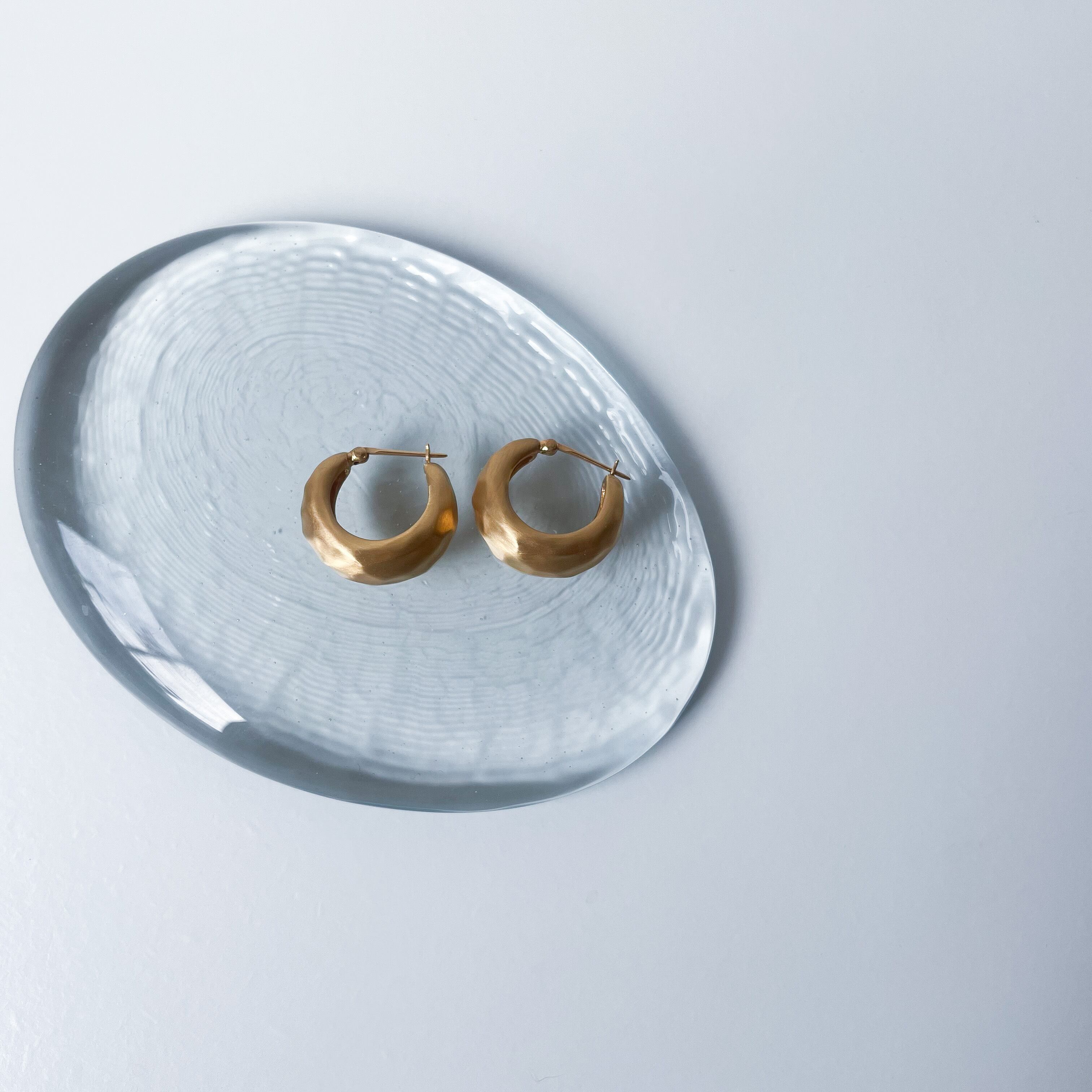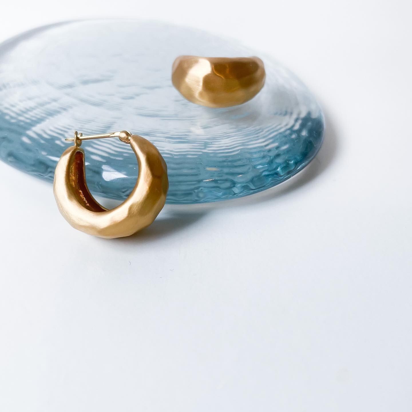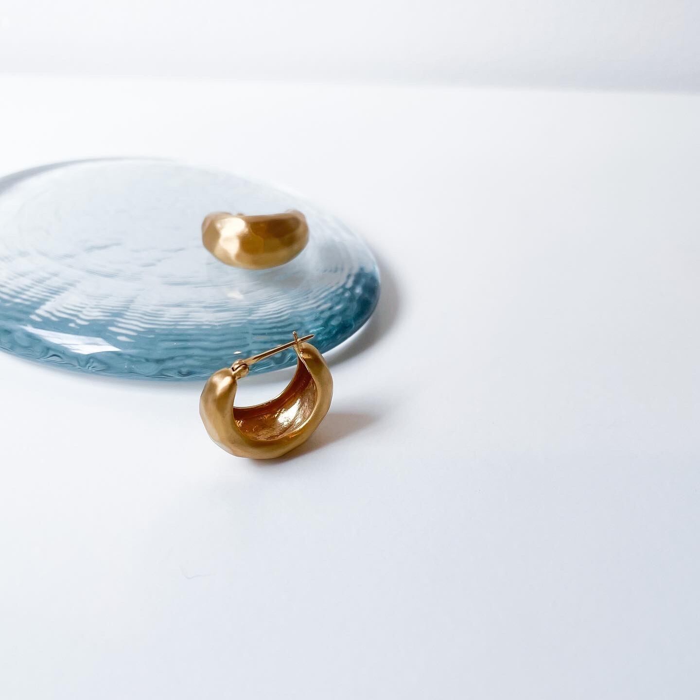 鮮やかなゴールドカラーに、表面は波を打つような不規則な模様を施しています。