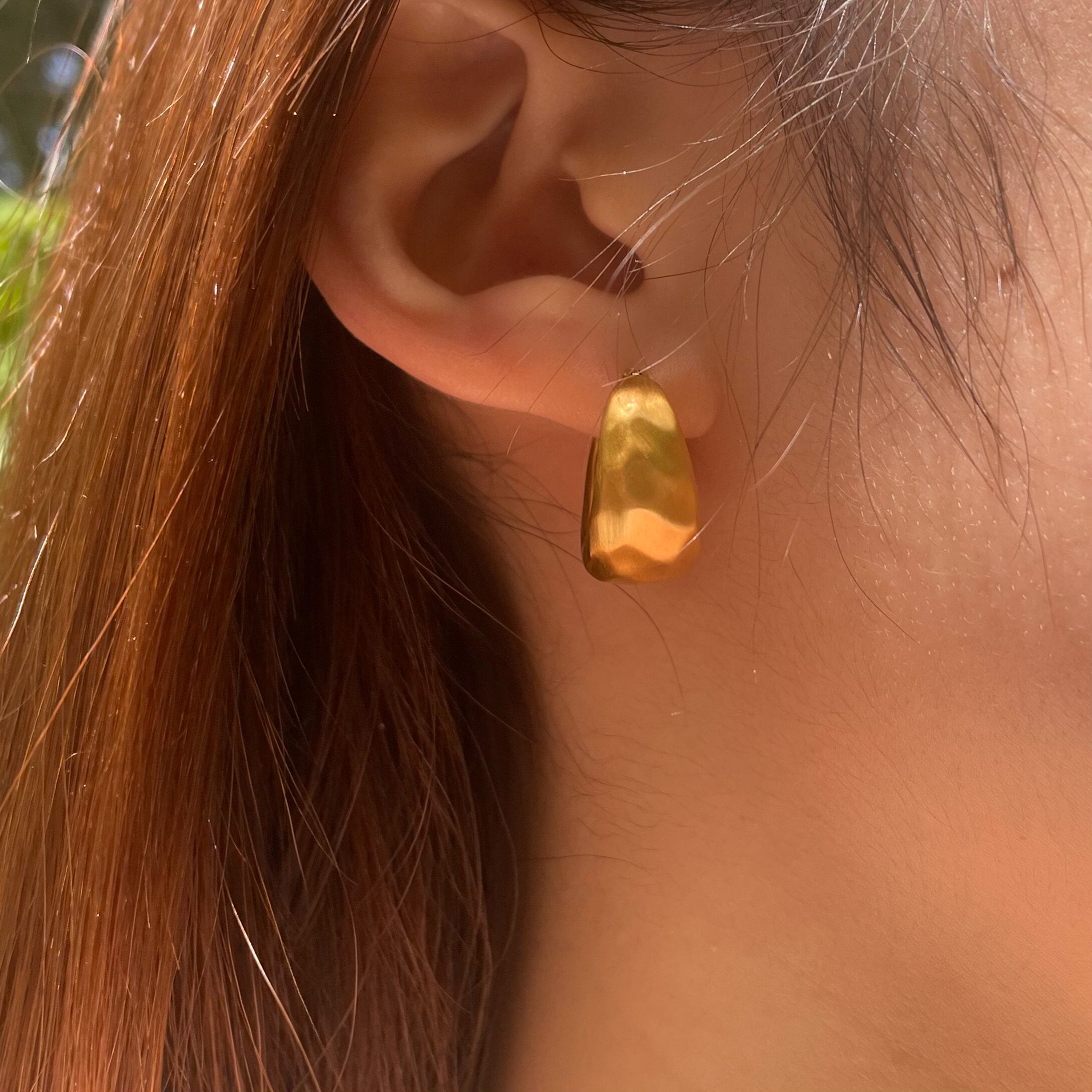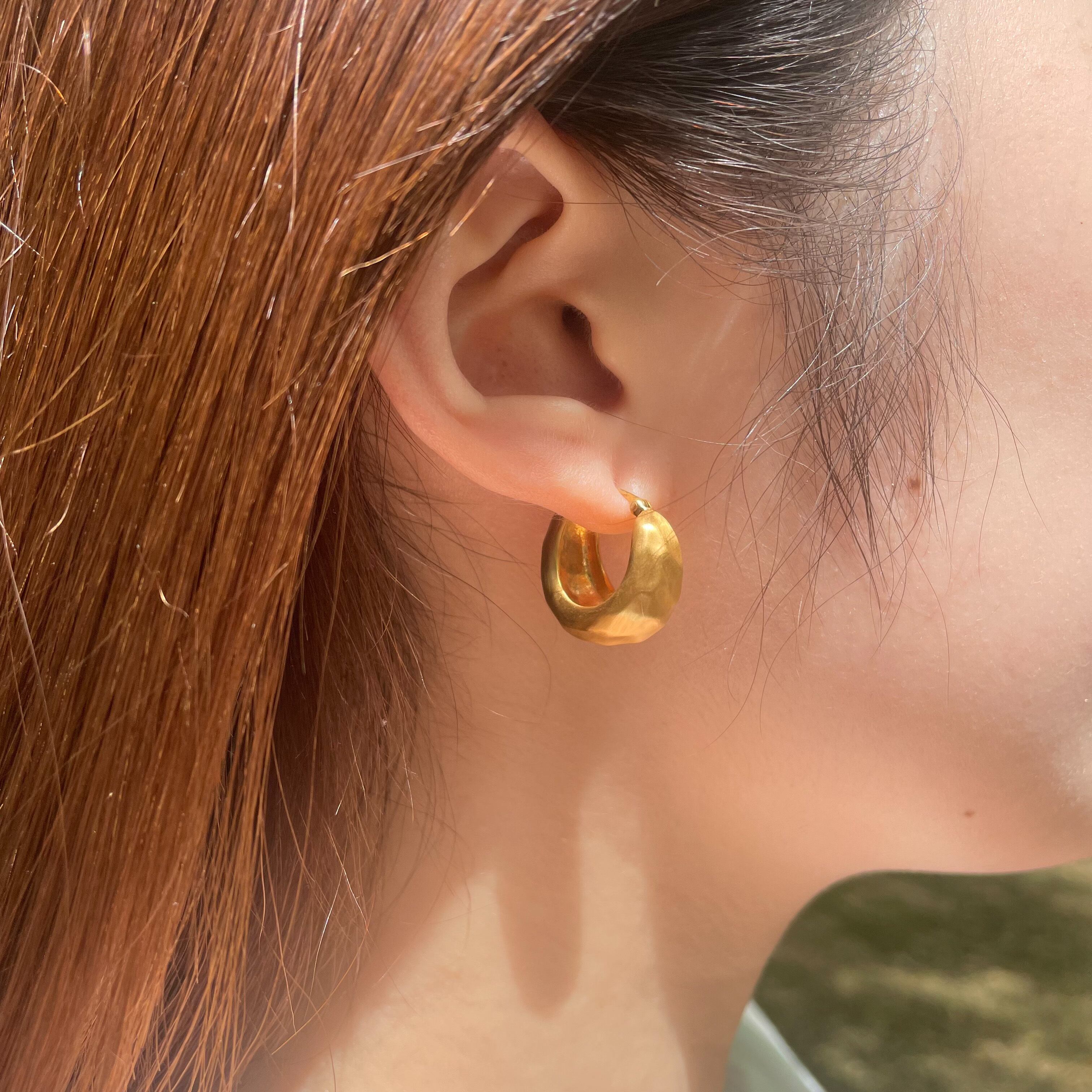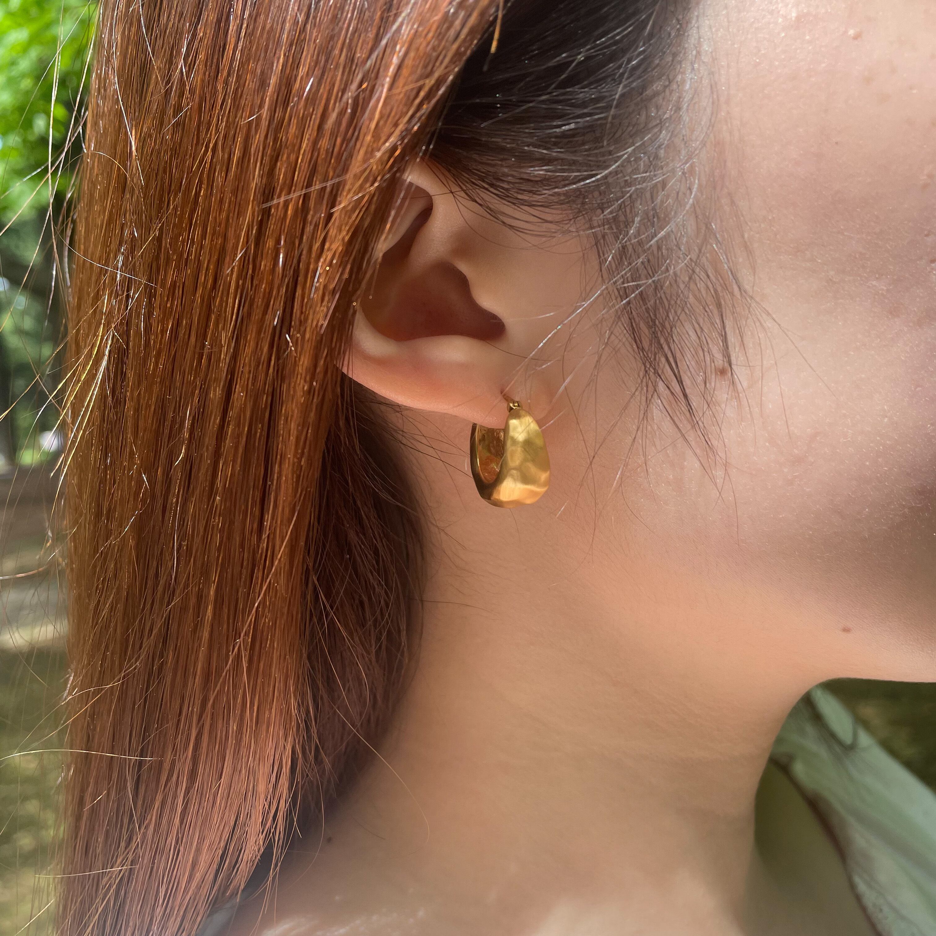 鮮やかなゴールドカラーに、表面は波を打つような不規則な模様を施しています。