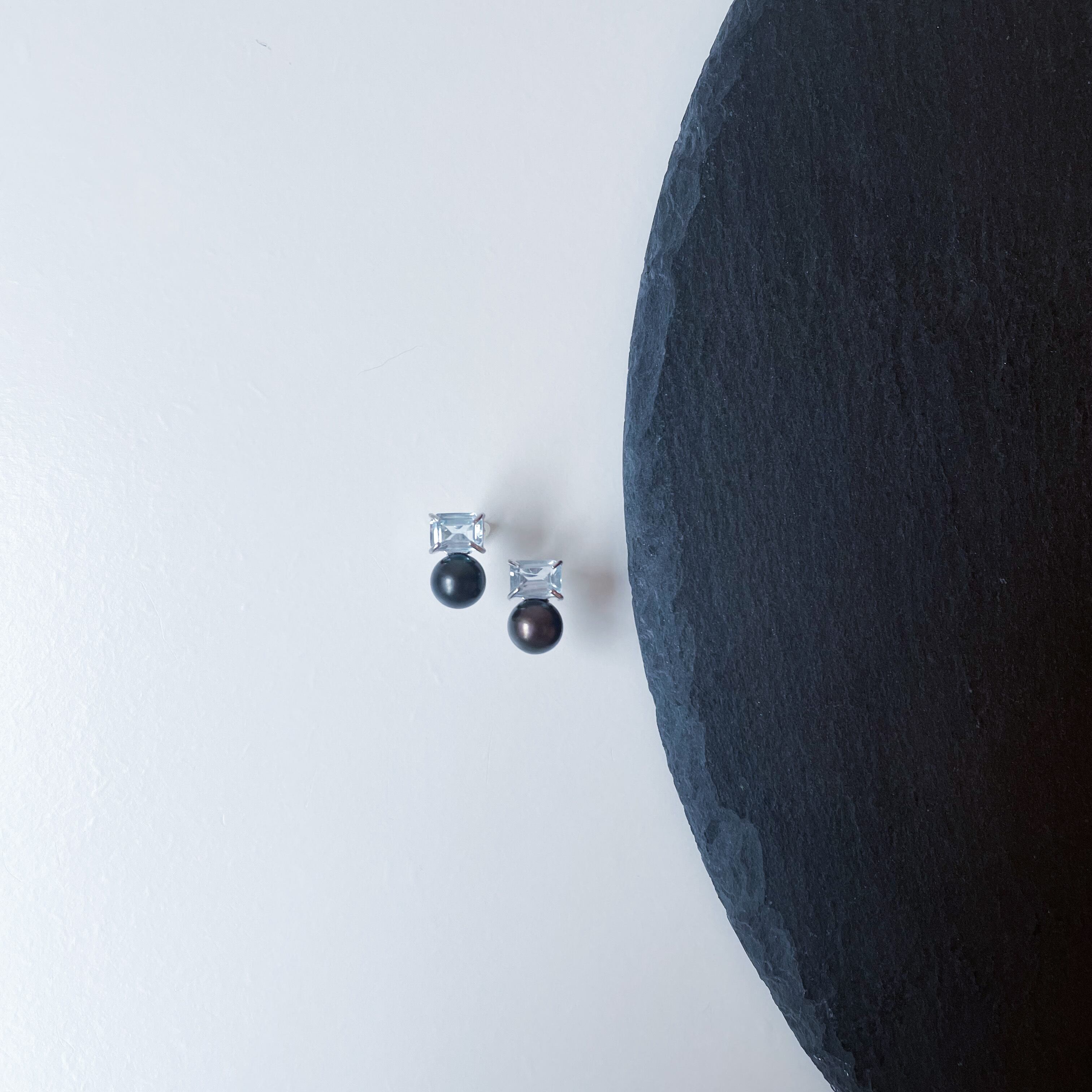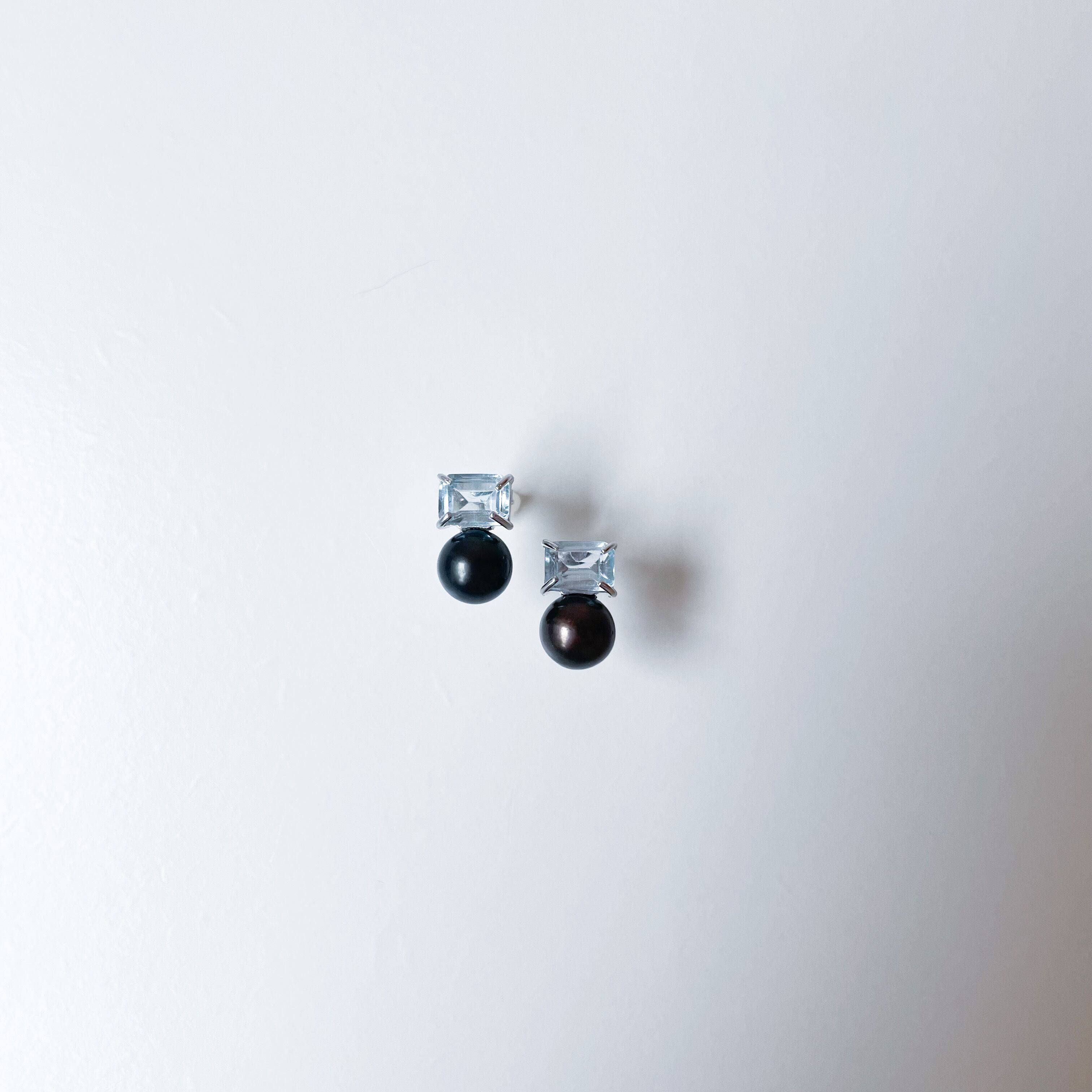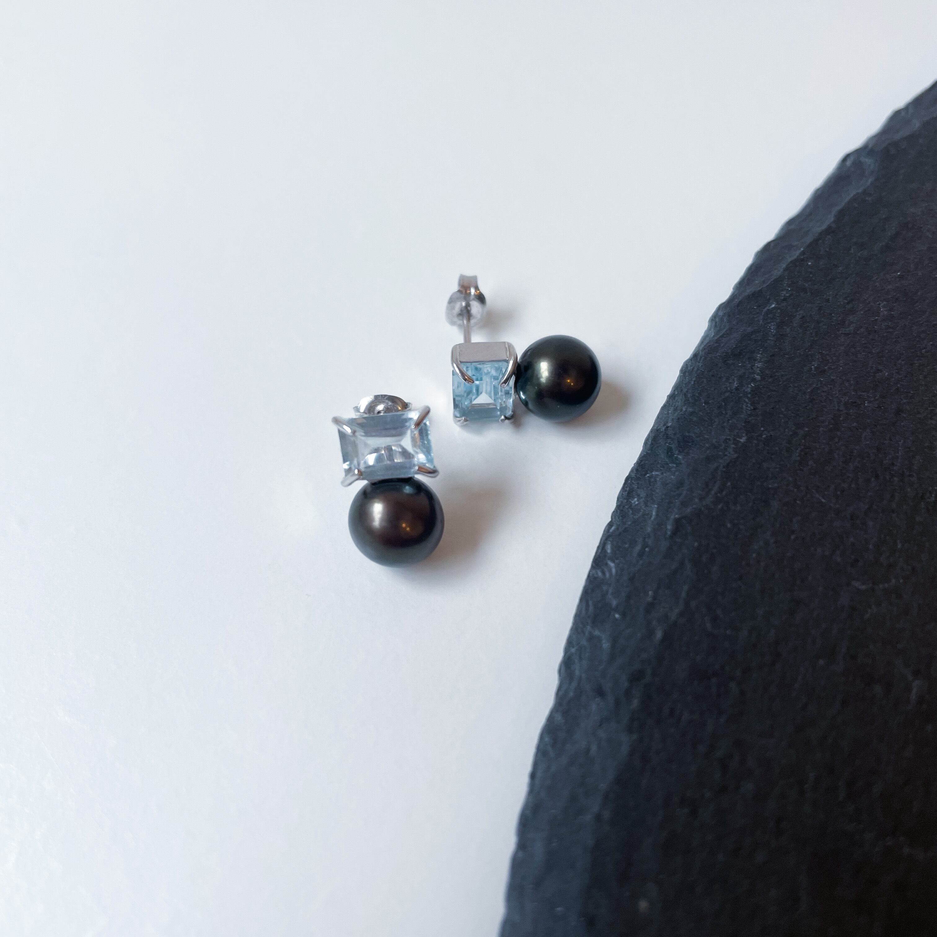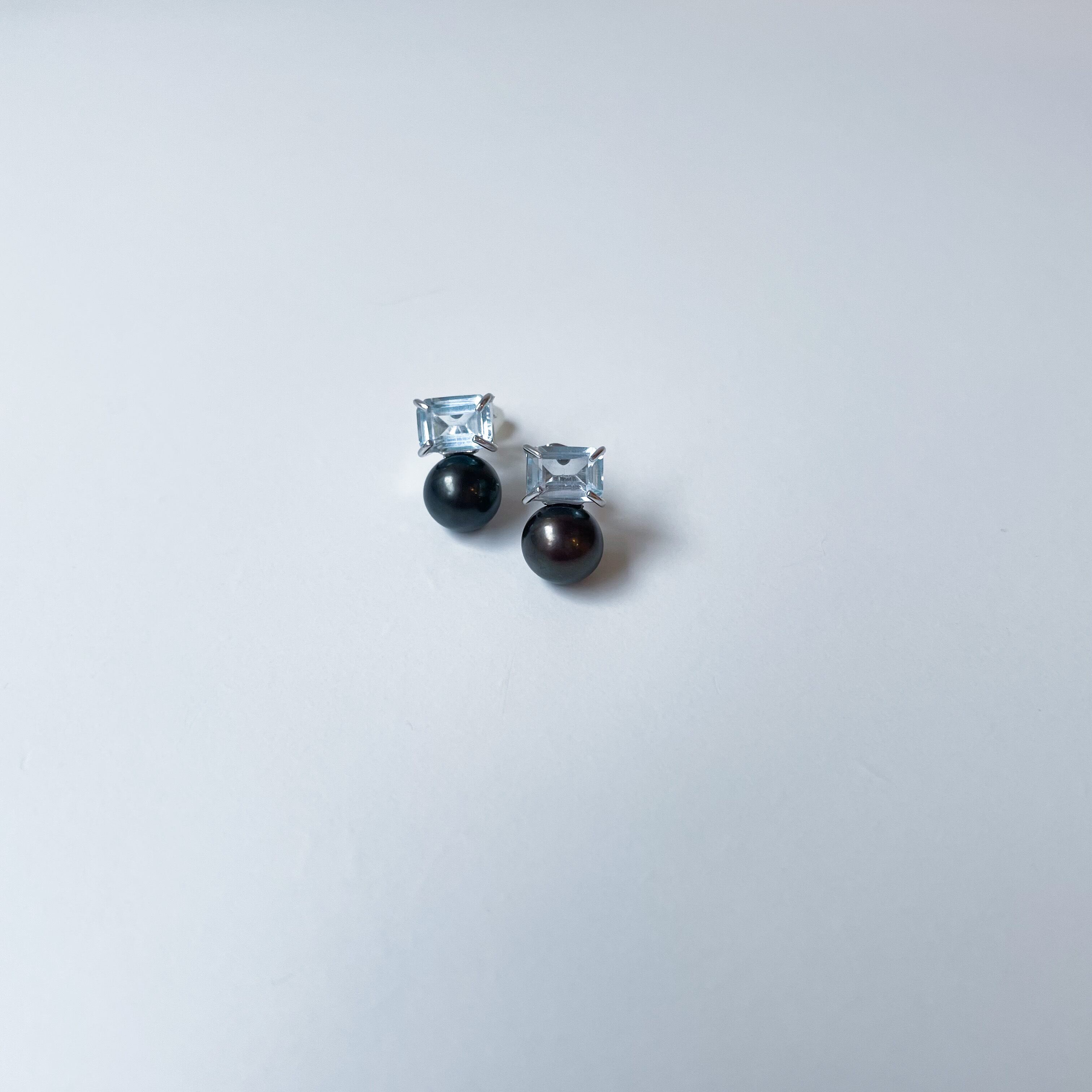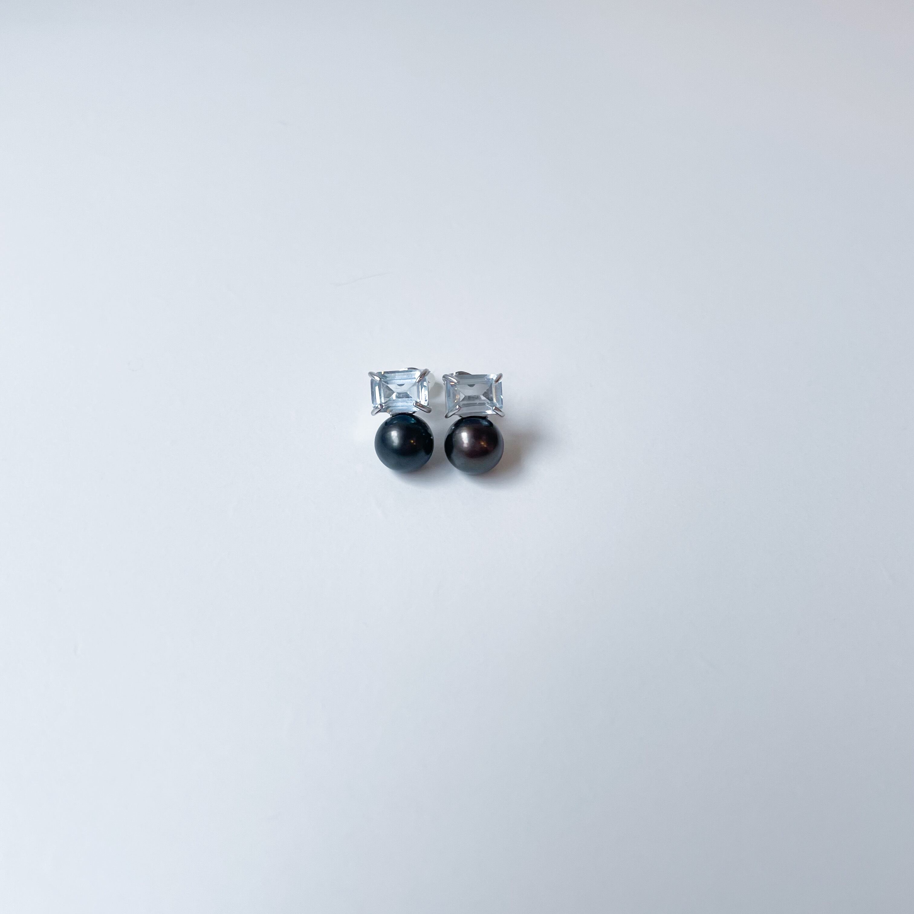 7mmサイズのレクタングルスカイブルートパーズと上質な淡水パールを使用した、